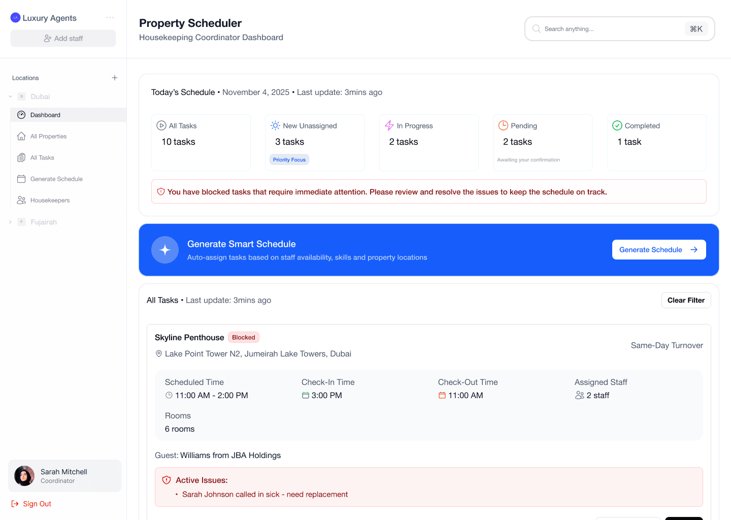 Optimized Scheduling flow for a Property company system